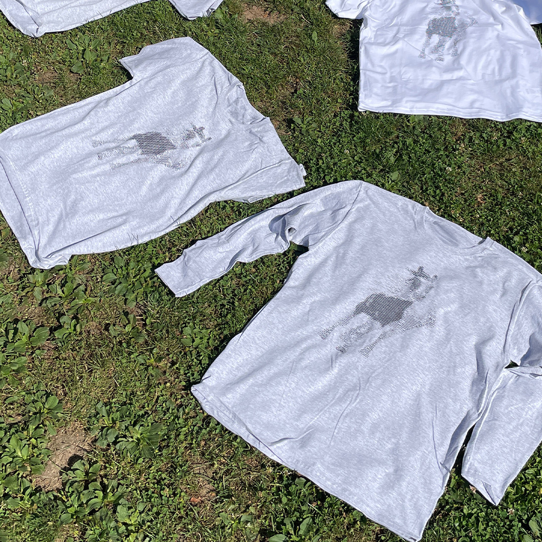 Running Horse ASCII Shirt. Silk screen printing of ASCII code on organic cotton.